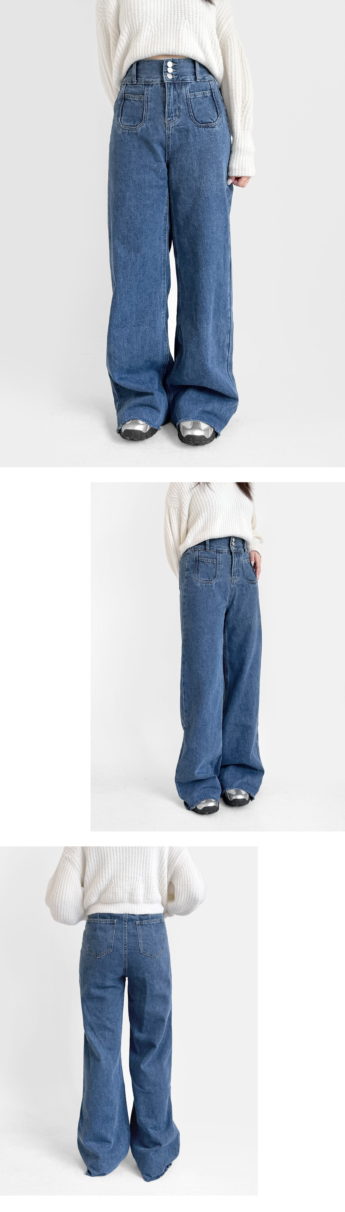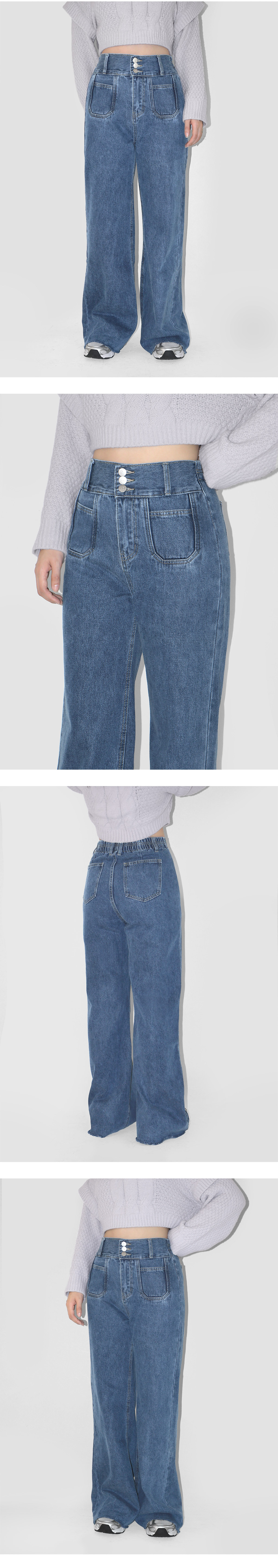 三釦牛仔落地寬褲 -【3171-2】
