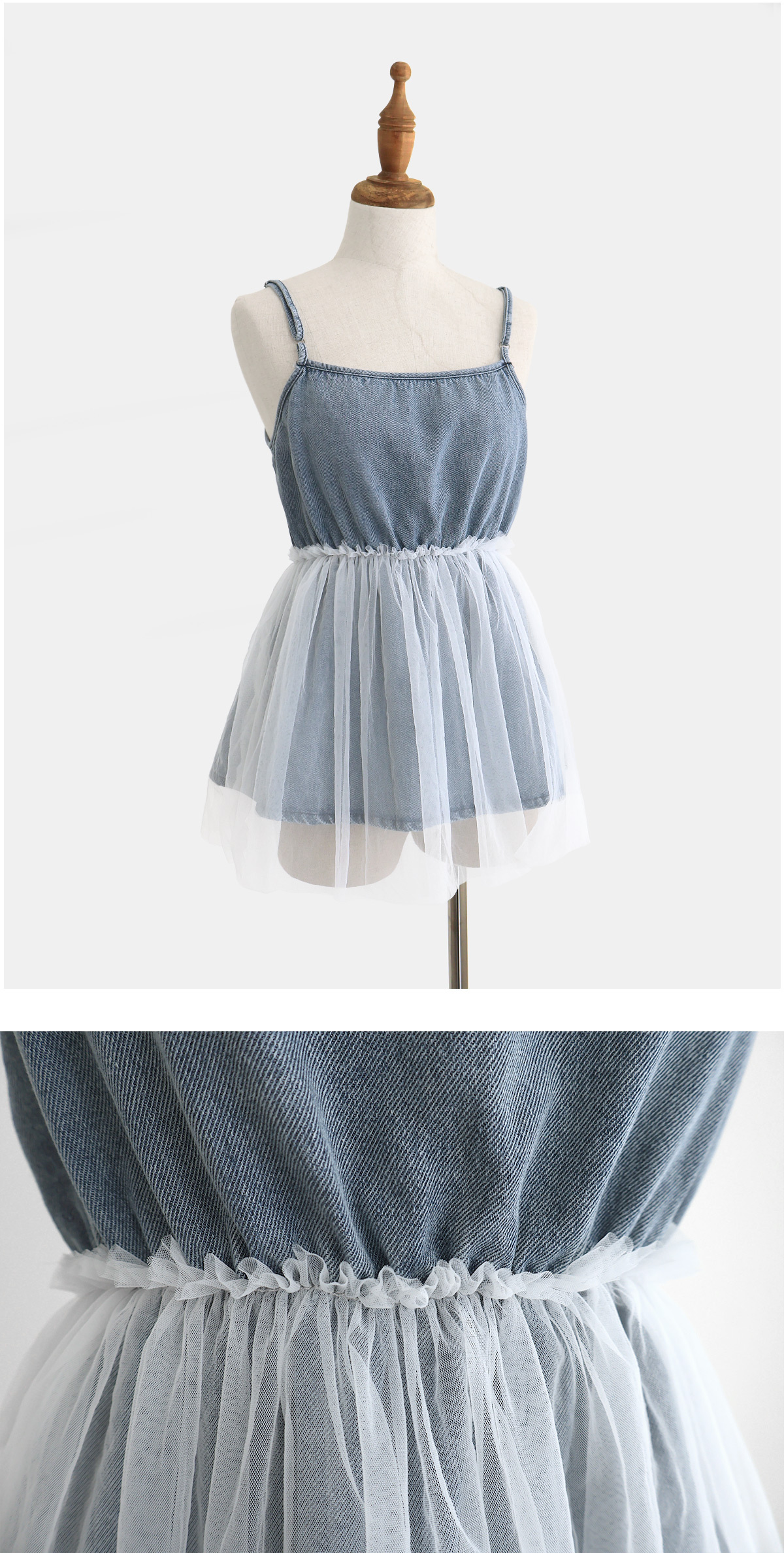 拼接雪紡牛仔吊帶 -【009635】