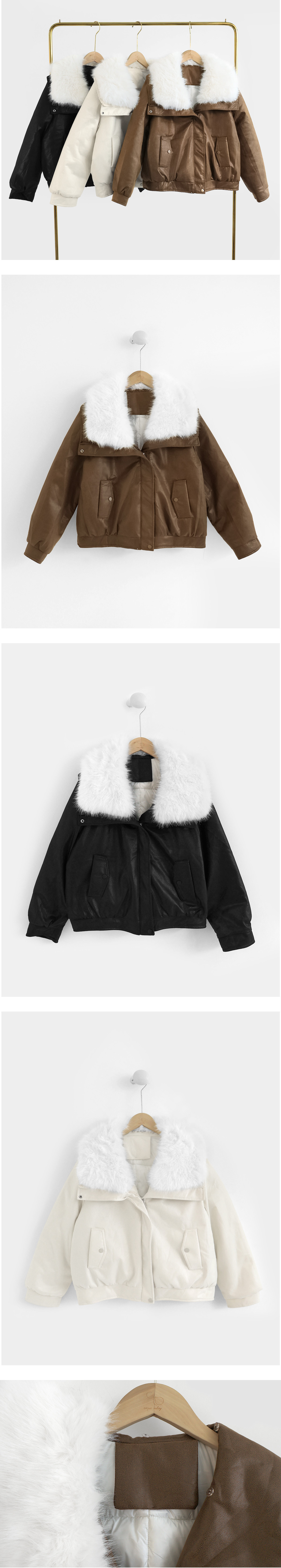 皮革鋪棉外套 -【008816】