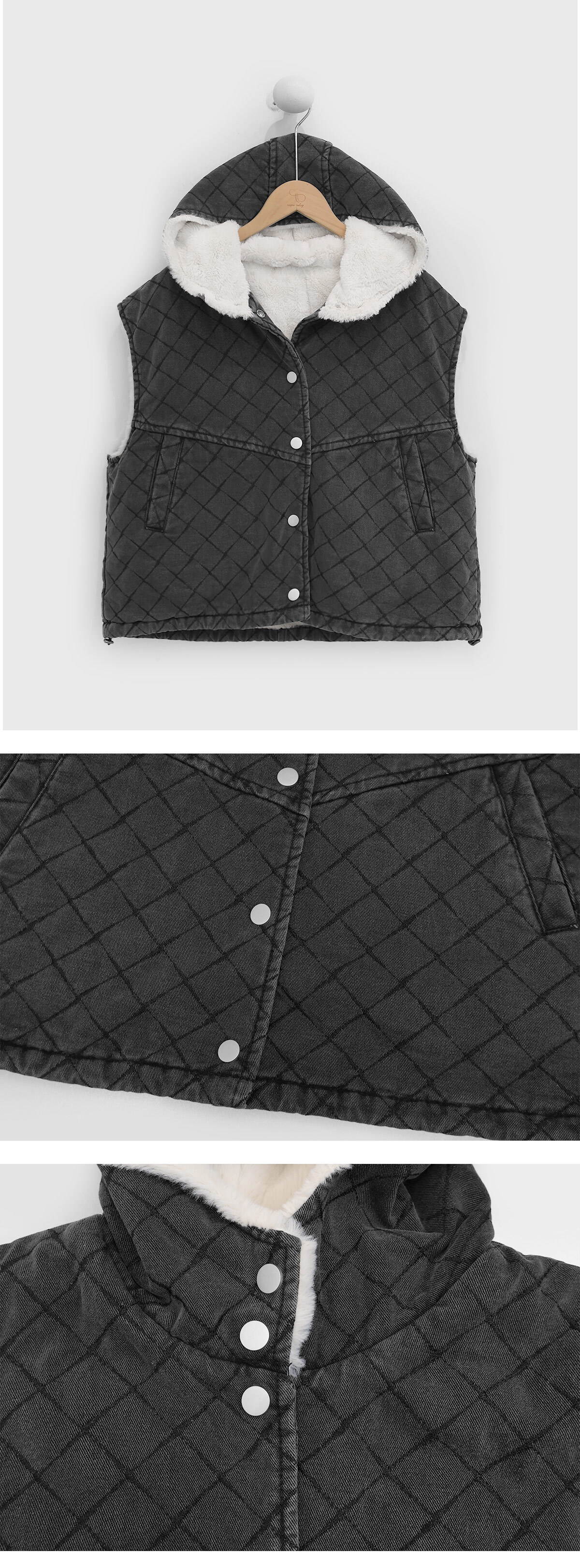 菱格牛仔鋪毛背心 -【0860-6】